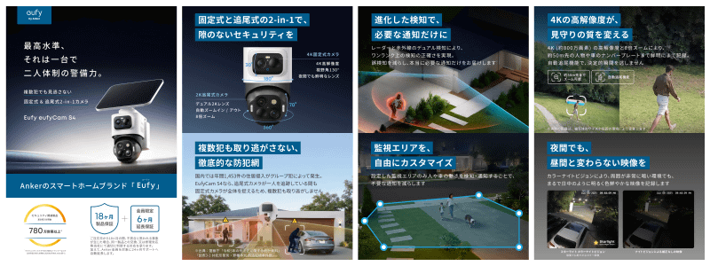 Anker、ソーラーパネル一体型ネットワークカメラ3製品を発売。検知機能強化のハイエンドモデルに4G対応モデルも