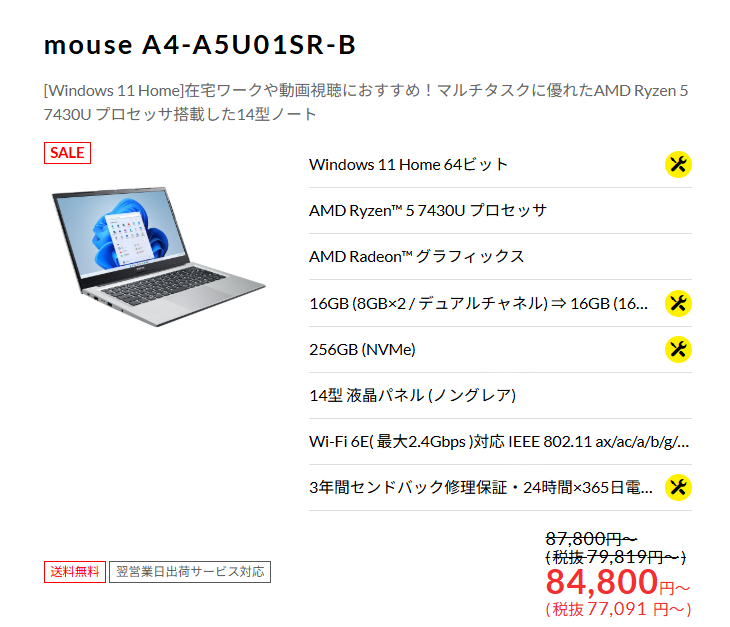マウスコンピューターECサイトで「ブラックフライデーセール」。最大10万円オフ! 12月10日まで