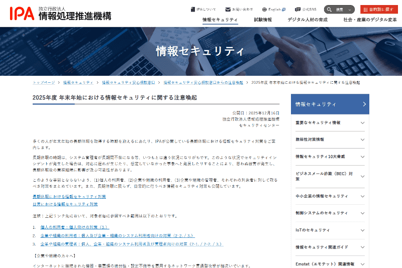 IPA、年末年始を迎える企業・組織に「ネットワーク貫通型攻撃」への対策を呼び掛け