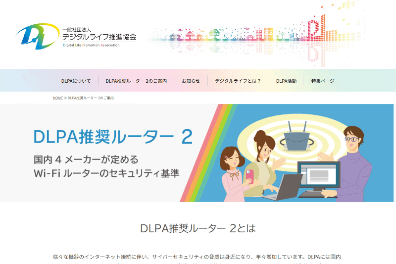 誰もが安全に使えるWi-Fiルーター「DLPA推奨ルーター」の紹介コンテンツ追加など、一般社団法人デジタルライフ推進協会(DLPA)がサイトをリニューアル