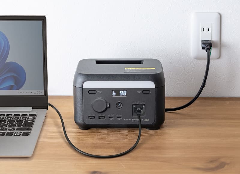 サンワサプライ、女性でも片手で持ち運べる2.5kg、300W出力のポータブル電源を発売