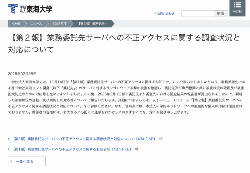 東海大学、委託先サーバーがランサムウェア被害、教職員や学生などの個人情報流出の可能性