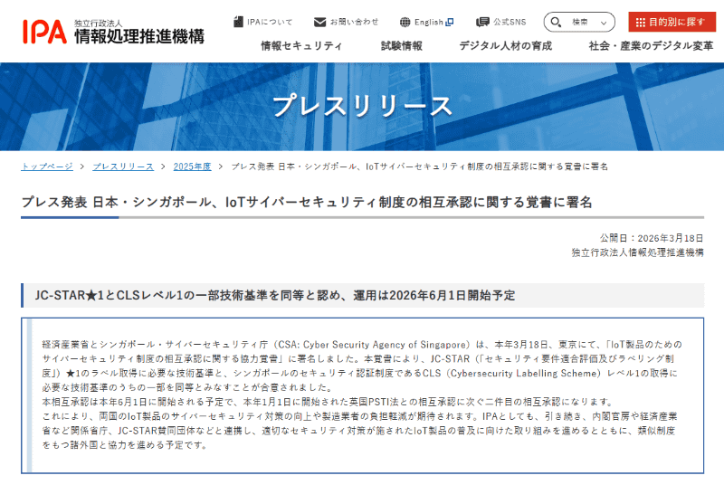 経済産業省と英国DSIT、JC-STARと英国PSTI法の相互承認に関する覚書に署名