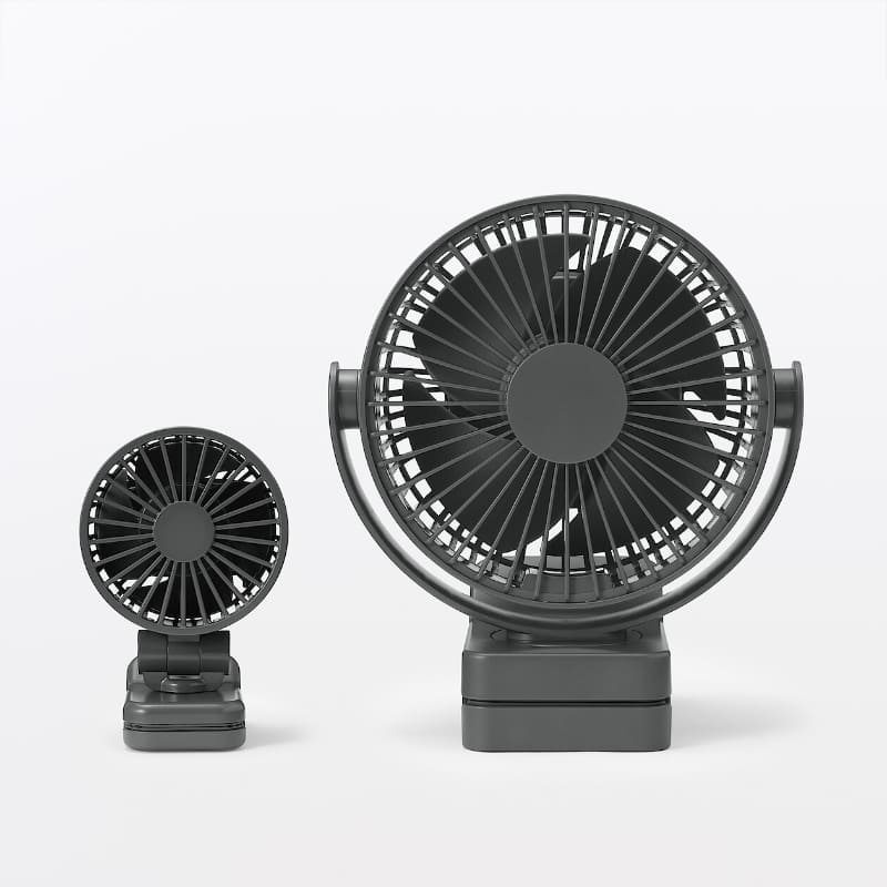 無印良品、バッテリーにもなる「角度が変わるハンディファン」とアロマ対応「首振り調整できるDC扇風機」発売